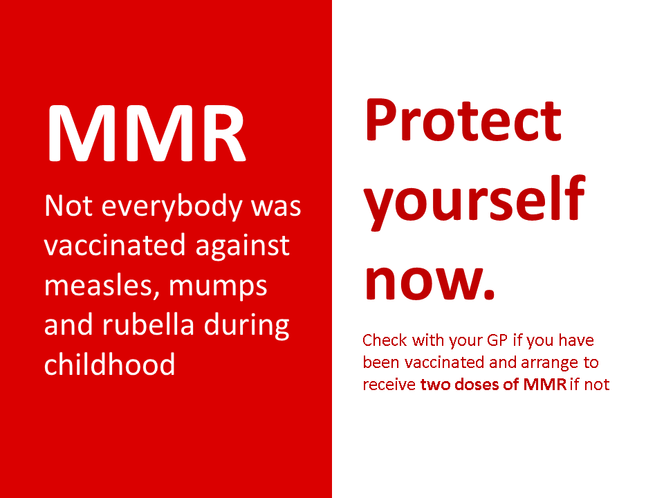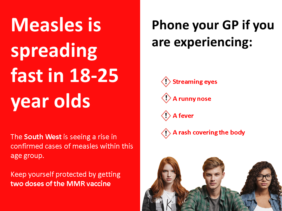 Cases of measles are on the increase this year across England. We are seeing a particular increase in people aged 15-25 who are more likely to have missed out on their MMR vaccine when they were younger, and this has recently resulted in a number of outbreaks across England.